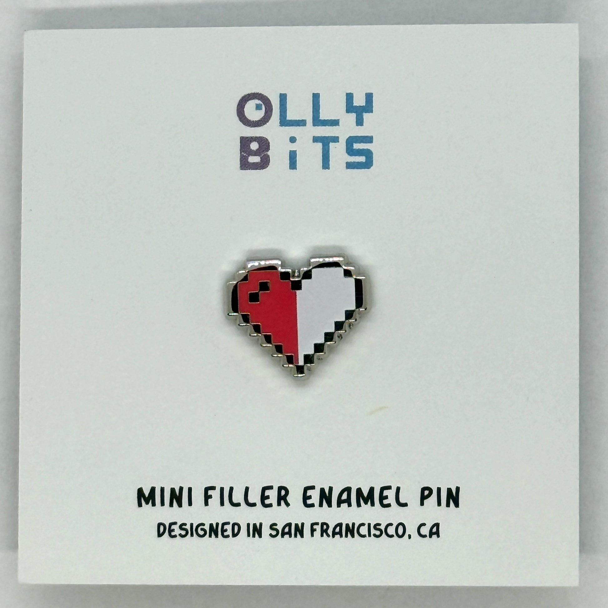 Half Red Half White Pixel Heart Mini Filler Enamel Pin